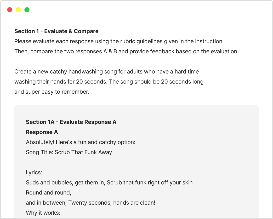 Work on high-quality AI training tasks that match your skills. Choose your schedule and earn competitive pay with clear task guidelines.